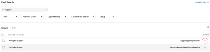 - Add people individually by selecting the plus ‘+’ sign on the right-hand side of the page in-line with that person’s name.