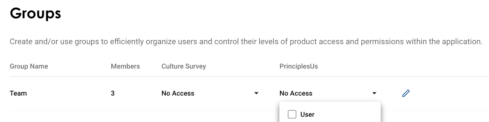 - Find the group and associated group members that you would like to grant product access to.