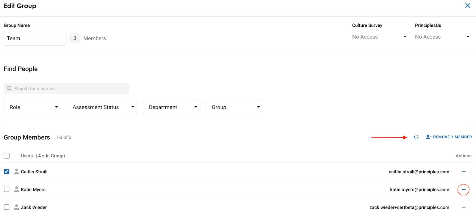 - Remove people in bulk by selecting the checkboxes next to each person’s name and selecting ’Remove [X] Members.’